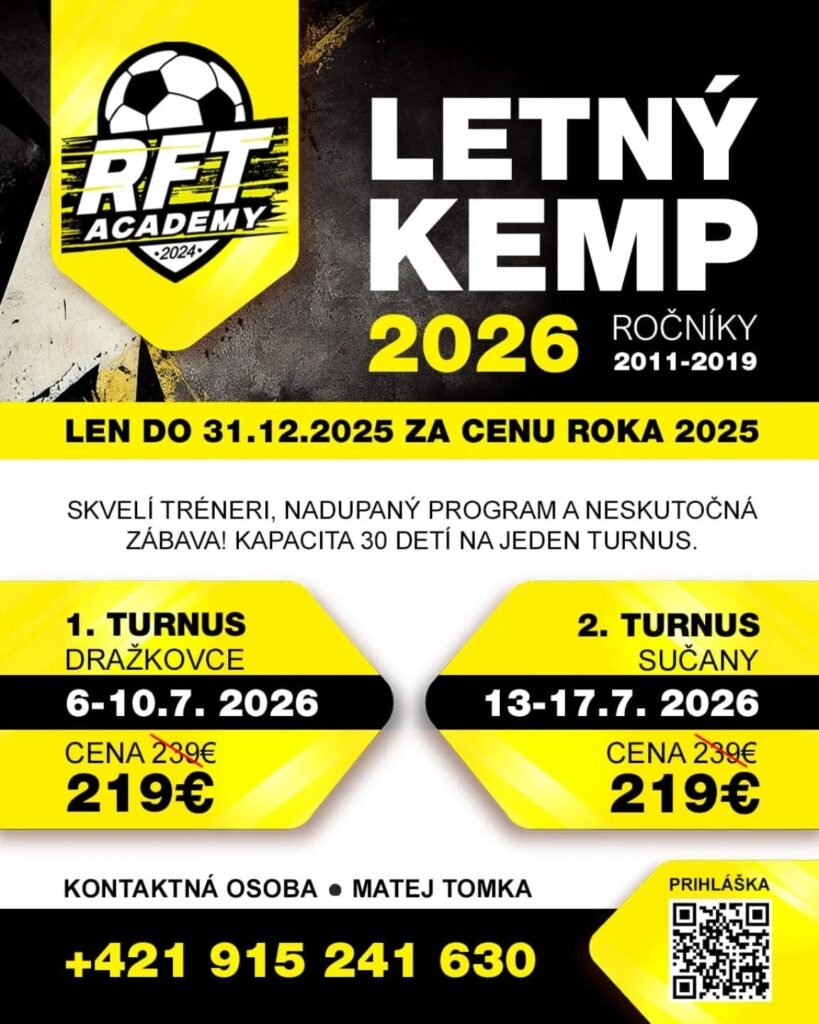 Sme viac než len futbalová akadémia. RFT znamená Rozvoj Futbalu v Turci – a presne to je naším poslaním. Sme komunita, ktorá formuje nielen skvelých hráčov, ale aj silné a zodpovedné osobnosti. Našou misiou je poskytovať deťom a mládeži z okolia Turca tie najlepšie podmienky pre rast, zdokonaľovanie futbalových zručností a rozvoj športového aj osobnostného potenciálu.